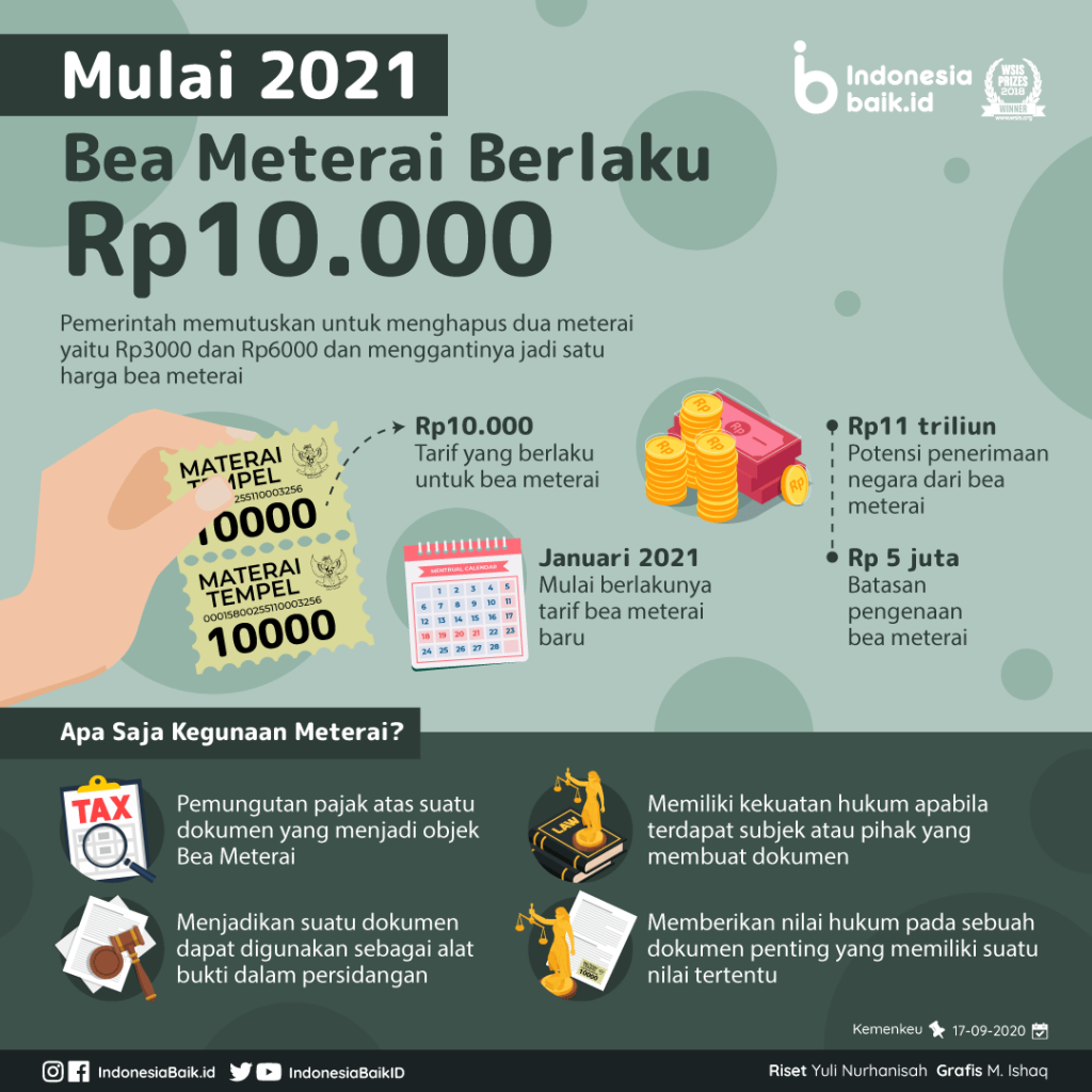 Merujuk pada UU Nomor 10 Tahun 2020, bea materai Rp 10.000